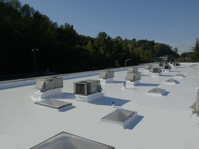 Our reflective roof coating systems protect existing roofing from UV damage, reduce surface temperatures, extend service life, and improve energy efficiency.